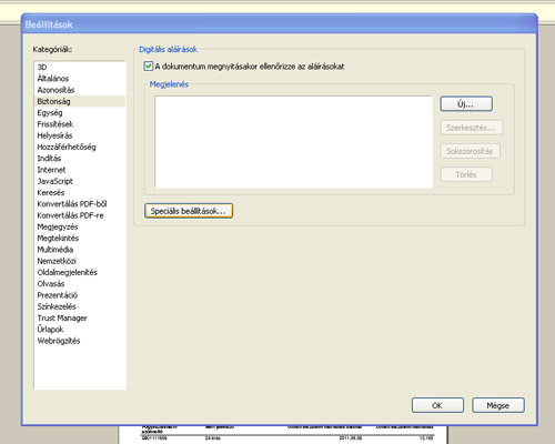 FIGYELEM: A fenti műveletek elvégzése után is hibaüzeneteket kaphat, pl: "Legalább egy aláírás hibás" vagy "Az aláírás érvényessége ISMERETLEN". Ennek oka, hogy az Adobe Reader alaphelyzetben nem használja a Windows operációs rendszer által biztosított automatikus tanúsítványlánc beszerzési funkciókat. A megoldáshoz kövesse